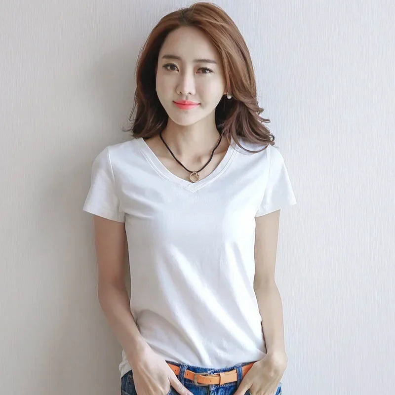 Color: White V-Neck,White O-Neck,Black V-Neck,Black O-Neck